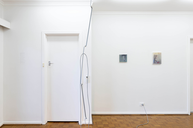 Reclaimed enamel coated steel, brass machine screws, LED light, cable